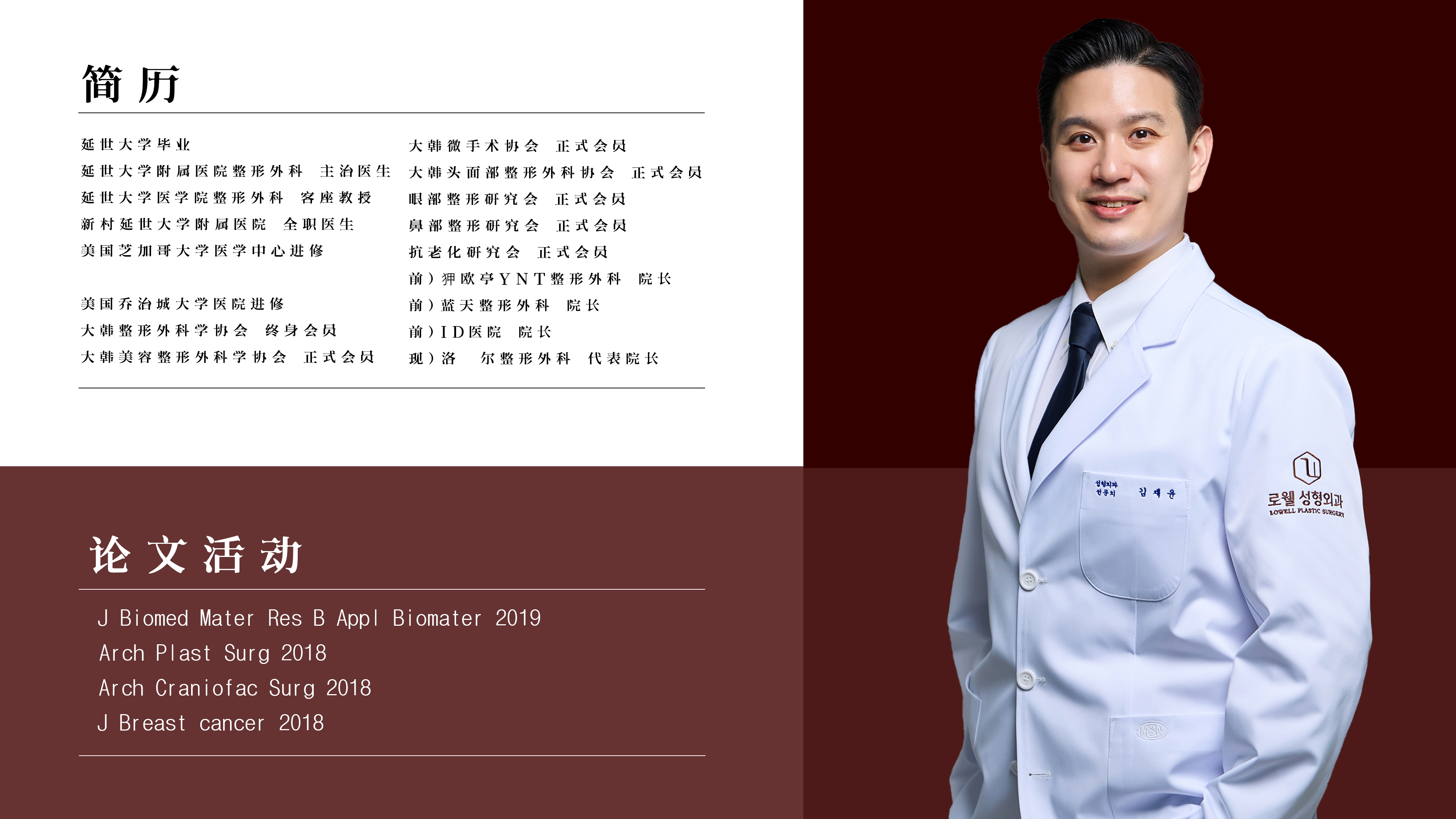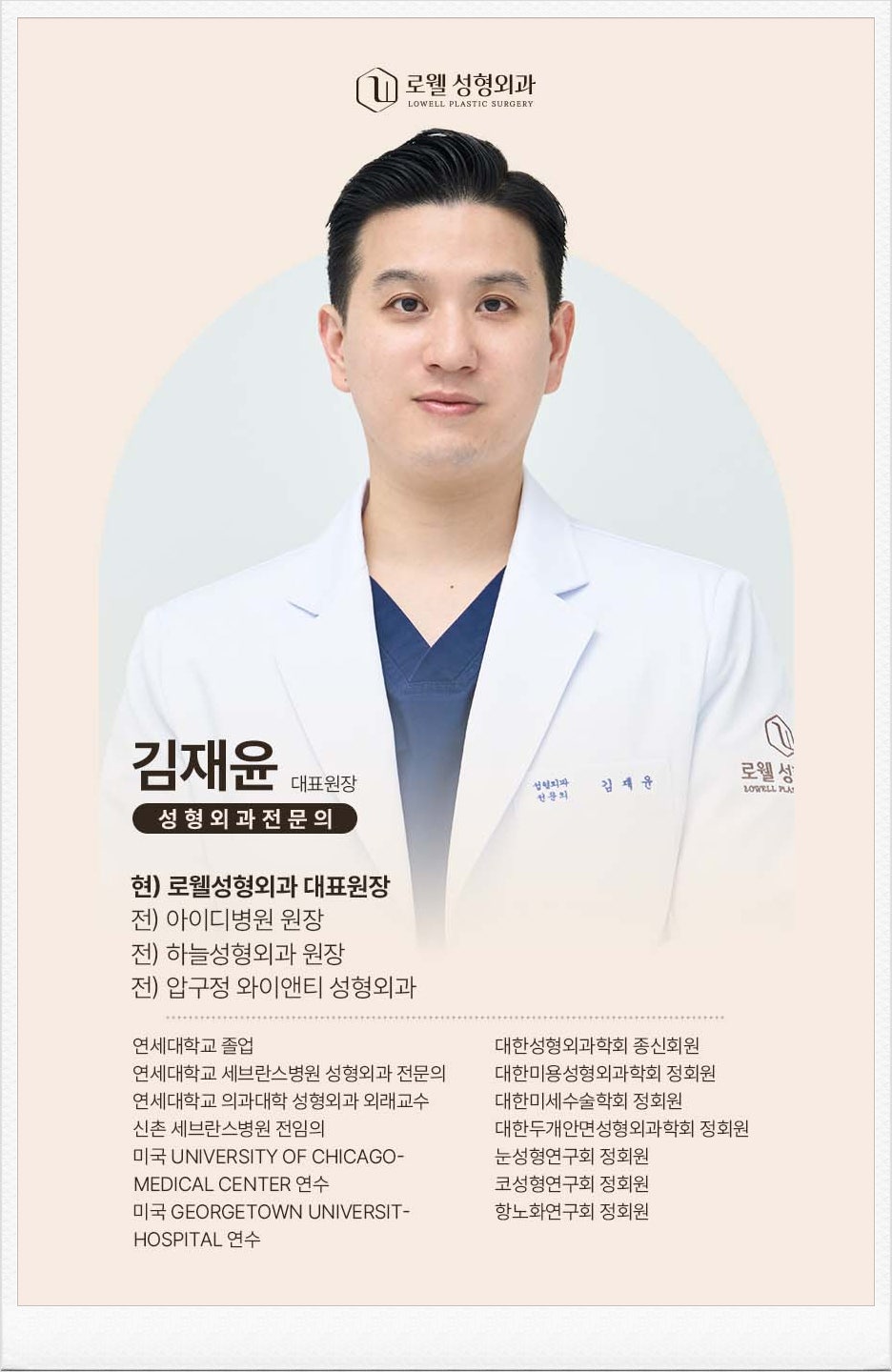 - 현) 로웰성형외과 대표원장